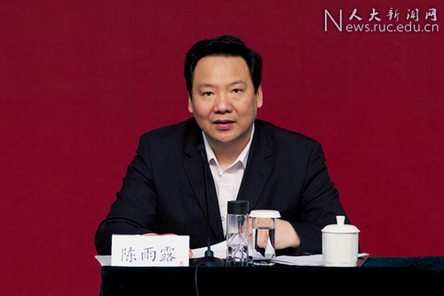 陈雨露校长在主持会议时表示,开展党的群众路线教育实践活动是新形势下坚持党要管党、从严治党的重大决策,是加强学习型、服务型、创新型马克思主义执政党建设的重大部署,是增强党自我净化、自我完善、自我革新、自我提高能力的重大举措,充分体现了我们党正视和解决自身问题的政治勇气,充分体现了我们党加强作风建设、密切联系群众的坚强决心。对这次教育实践活动,学校高度重视,我们有决心、有信心把教育实践活动搞好,希望大家能够严肃认真对待。我们将严格按照中央各项部署要求,在督导组的帮助指导下,把教育实践活动和当前学校中心工作紧密结合起来,以高度的政治自觉抓好教育实践活动的贯彻落实,转变作风,凝聚力量,为加快建设“人民满意、世界一流”大学提供坚强保证。
