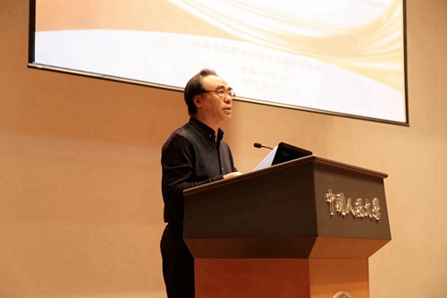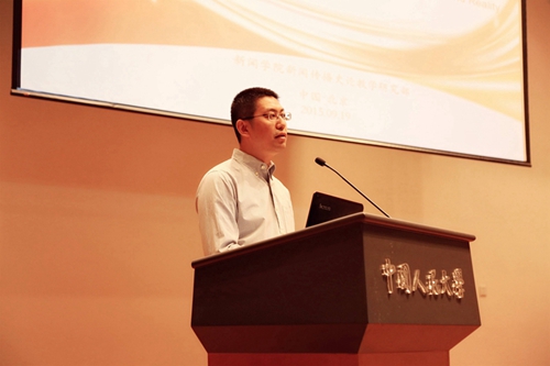 我院副院长杨保军教授代表新闻学院进行开幕式致辞,欢迎各位嘉宾莅临现场。杨保军教授在致辞中提出,在新的全球化视野和新兴媒介环境下,新闻传播研究正在开拓新的局面,面临着机遇和挑战,需要我们开辟新的研究领域和视野,在探索中前进。中国根基、世界眼光、时代特色、人类胸怀、原创精神、学科融合应是我们拥有的基本姿态和方法论观念。