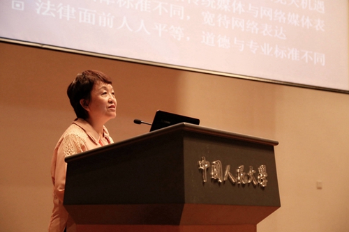 中央人民广播电台的徐迅教授带来了题为“网络法研究中应当防止几种倾向”的主题演讲,她谈到,网络的出现简化了中国传播法的理论困境。网络法研究中应当防止以下几种倾向:一、就网论网,忽略传播共性;二、法律万能:法律作为强制力对表达自由应当保持谦抑,网络作为新技术宜适度限制,以免失机遇;三、主张传统媒体与网络媒体表达的法律标准不同,宽待网络表达。法律面前应人人平等,道德与专业标准不应该不同。