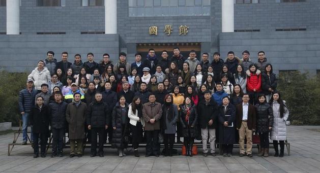 聘任仪式结束后,到场的全体师生在学校国学馆前合影留念。